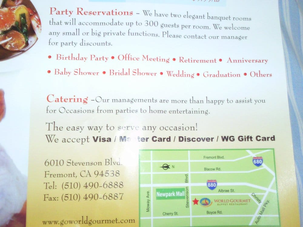 At the World Gourmet Buffet, located conveniently at 6010 Stevenson Blvd in Fremont, CA, seafood takes center stage, particularly with its delectable offerings of Japanese cuisine. Dive into an extensive selection that includes fresh sashimi, savory clams, and indulgent oysters. Customers rave about the buffet's variety, and you can expect well-prepared dishes like perfectly cooked broccoli and unique items such as spicy sole filet.